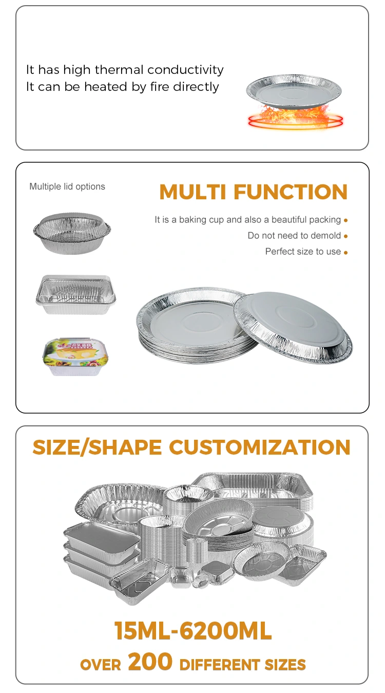 कौटुंबिक मेळाव्यात कौटुंबिक मेळावे, 10 इंच पिझ्झा पॅन सिल्व्हर अ‍ॅल्युमिनियम फॉइल कंटेनर निःसंशयपणे एक अपरिहार्य सहाय्यक आहे. हे भाजलेले कोंबडी आणि स्टू सारख्या मुख्य पदार्थांसाठी किंवा उरलेल्या अन्नासाठी डिस्पोजेबल भांडी म्हणून वापरली जाऊ शकते, जे जेवणानंतर साफसफाईचे ओझे कमी करण्यासाठी सोयीस्कर आणि द्रुत आहे. याव्यतिरिक्त, त्याच्या कमी वजनाच्या आणि सहजपणे वाहून जाण्याच्या वैशिष्ट्यांमुळे, हे मैदानी सहलीसाठी आदर्श आहे.