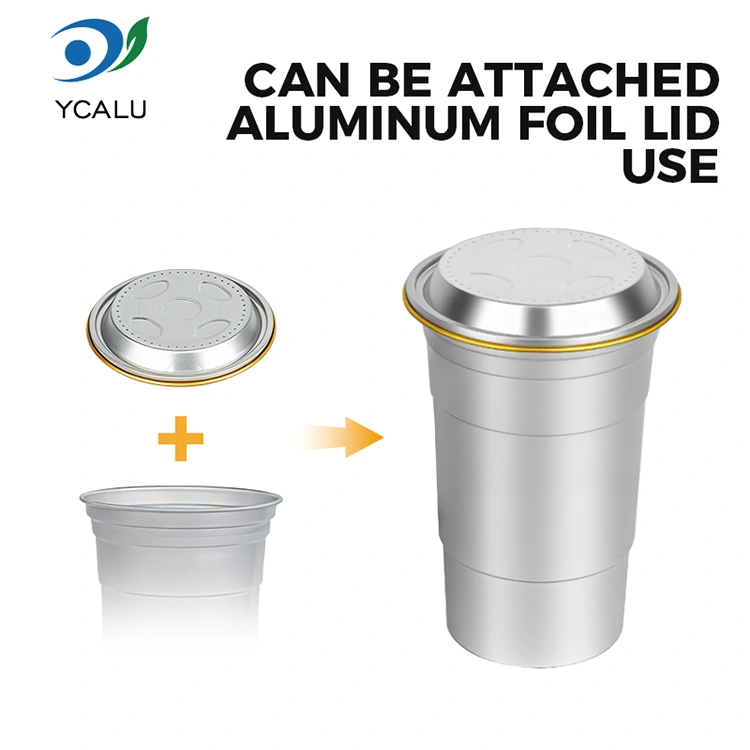 सामान्य कंटेनरच्या विपरीत, Yunchu 16oz डिस्पोजेबल कस्टम ॲल्युमिनियम फॉइल पेय कप विशेषतः विशिष्ट परिस्थितीत ब्रँडसाठी पॅकेजिंग सोल्यूशन्स प्रदान करण्यासाठी डिझाइन केलेले आहे. त्याच्या कॉम्पॅक्ट आकारासह (460 मिलीलीटर), हा कस्टमाइज करण्यायोग्य डिस्पोजेबल 16oz कस्टम ॲल्युमिनियम फॉइल ड्रिंक कप सिंगल-सर्व्ह इन्स्टंट शीतपेयांच्या वापराच्या सवयी पूर्ण करतो. हे 16oz सानुकूल डिस्पोजेबल ॲल्युमिनियम फॉइल पार्टी कप टेकआउट, मार्केट किंवा कॅम्पिंग क्रियाकलापांसाठी विशेषतः योग्य आहे, त्याच्या व्यावहारिक कार्यांपलीकडे. प्रामुख्याने, हे ब्रँड मूल्य वाढविण्यात मदत करू शकते.