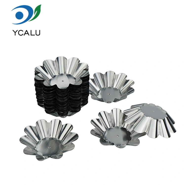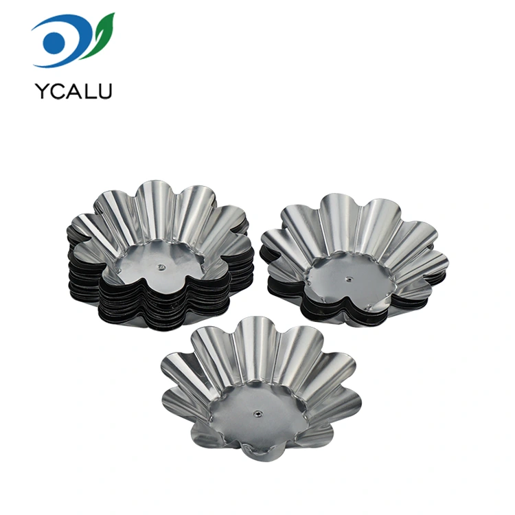 डिस्पोजेबल क्रायसॅन्थेमम एग टार्ट ट्रे सिल्व्हर ॲल्युमिनियम फॉइल खाद्य कंटेनर