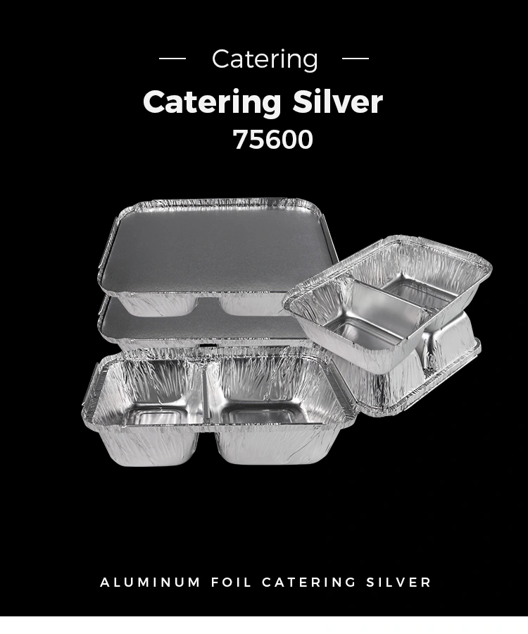 • डिस्पोजेबल कंपार्टमेंट फास्ट फूड सिल्व्हर अ‍ॅल्युमिनियम फॉइल कंटेनरडिस्पोजेबल कंपार्टमेंट फास्ट फूड सिल्व्हर अ‍ॅल्युमिनियम फॉइल कंटेनर