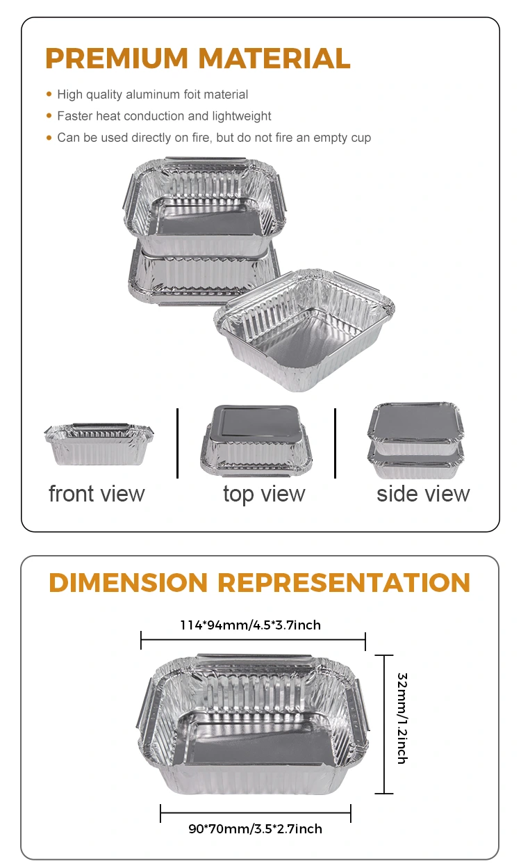 यंचू uminum ल्युमिनियम फॉइल पुरवठादाराचा डिस्पोजेबल टिन फॉइल बॉक्स बीबीक्यू सिल्व्हर अ‍ॅल्युमिनियम फॉइल कंटेनरमध्ये वर्धित अँटी-स्लिप गुणधर्मांसाठी तळाशी एक अवतल आणि उत्तल रचनेसह एक अद्वितीय लांब ब्रेड डिझाइन आहे. बाजूंनी जोडलेल्या स्टिफनर्समुळे उत्पादनाची कडकपणा वाढते. हेमिंग डिझाइन कंटेनरला अधिक मजबूत आणि टिकाऊ बनवते, उच्च तापमानाचा प्रतिकार करण्यास आणि समान रीतीने उष्णता आयोजित करण्यास सक्षम करते, गरम करताना अन्न झूमिंग किंवा चिकटून राहण्यापासून टाळते.