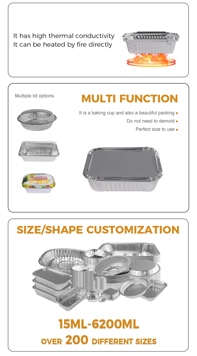 याव्यतिरिक्त, हा डिस्पोजेबल बार्बेक्यू लंच बॉक्स सिल्व्हर अ‍ॅल्युमिनियम फॉइल कंटेनर देखील अत्यंत सुरक्षित आहे, कारण तो आगीच्या धोक्यांविषयी अजिबात चिंता न करता सामान्यपणे खुल्या ज्वालाखाली वापरला जाऊ शकतो. त्याच वेळी, त्याचे उत्कृष्ट तापमान प्रतिकार आणि सीलिंग अन्नाच्या सुरक्षित वाहतुकीची हमी देखील प्रदान करते, ज्यामुळे ग्राहक आणि ग्राहकांना अधिक आत्मविश्वासाने वापरण्याची परवानगी मिळते.