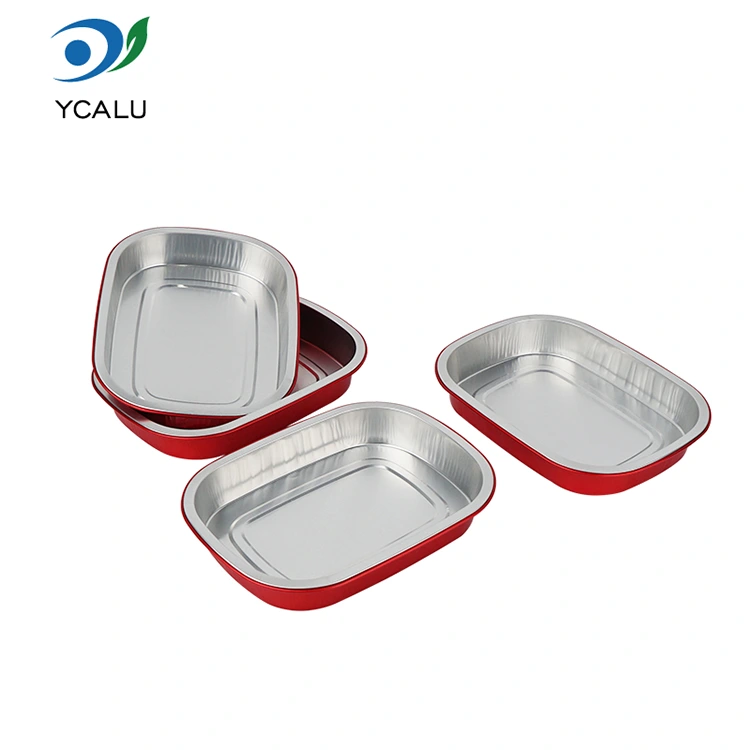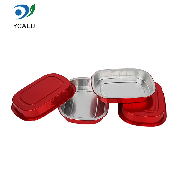 डिस्पोजेबल लाल लंच बॉक्स स्क्वेअर ॲल्युमिनियम फॉइल कंटेनर