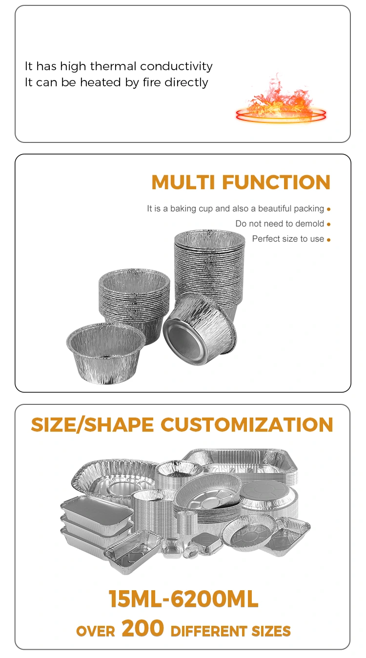 वैशिष्ट्ये: निरोगी आणि पर्यावरणास अनुकूल, साफसफाईची आवश्यकता नाही, विविध घरगुती आणि बेक केलेले पदार्थ बनवण्यासाठी योग्य. कुटुंब आणि बेकरीसाठी हा सर्वोत्तम पर्याय आहे. ॲल्युमिनियम फॉइल सामग्री सुरक्षित आणि स्वच्छ आहे, कोणत्याही साफसफाईची आवश्यकता नाही आणि ते खुल्या ज्वालावर बेक केले जाऊ शकते, ज्यामुळे ते स्वादिष्ट अन्न बनवण्यास सोयीस्कर बनते.