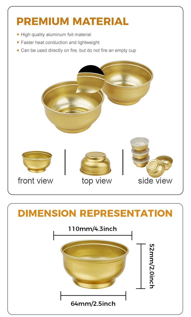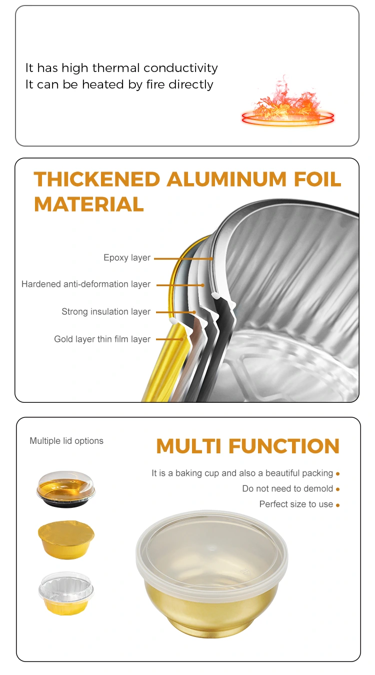यंचू अॅल्युमिनियम फॉइल मॅन्युफॅक्चरिंग फॅक्टरी, डिस्पोजेबल गोल सोन्याचे वाडगा अ‍ॅल्युमिनियम फॉइल कंटेनर, एक अद्वितीय आकाराचे वाडगा-प्रकार अ‍ॅल्युमिनियम फॉइल कंटेनर, हा कंटेनर पॅकेजिंग, प्री-शिजवलेल्या जेवण, तांदूळ, नूडल्स इत्यादीकडे आहे, जेवणापेक्षा अधिक अर्थपूर्णतेपेक्षा अधिक सोयीस्कर आहे. वैयक्तिकरित्या पॅकेज केलेल्या वाटी त्वचेचे नुकसान होण्याची शक्यता नसतात, वाहून नेण्यास सुलभ, निवडलेल्या बळकट आणि टिकाऊ सामग्रीपासून बनविलेले, स्वतंत्रपणे लपेटलेले, व्हॅक्यूम निर्जंतुकीकरण, उघडणे आणि खाणे सोपे, 121 डिग्री सेल्सिअस तापमानात स्वयंपाक करताना ताजेपणा लॉक करण्यास सक्षम असते. मायक्रोवेव्हमध्ये मूळ वाटी गरम केली जाऊ शकत नाही. स्टोरेजसाठी स्टॅक करण्यायोग्य, विविध वैशिष्ट्यांमध्ये उपलब्ध, स्वयंपाकघर व्यवस्थित आणि व्यवस्थित ठेवण्यासाठी अॅल्युमिनियमच्या वाडग्या रचल्या जाऊ शकतात. वेगवेगळ्या आकारात विविध पॅकेजिंग गरजा भागवतात - एकावेळी एक वाडगा अगदी बरोबर आहे.