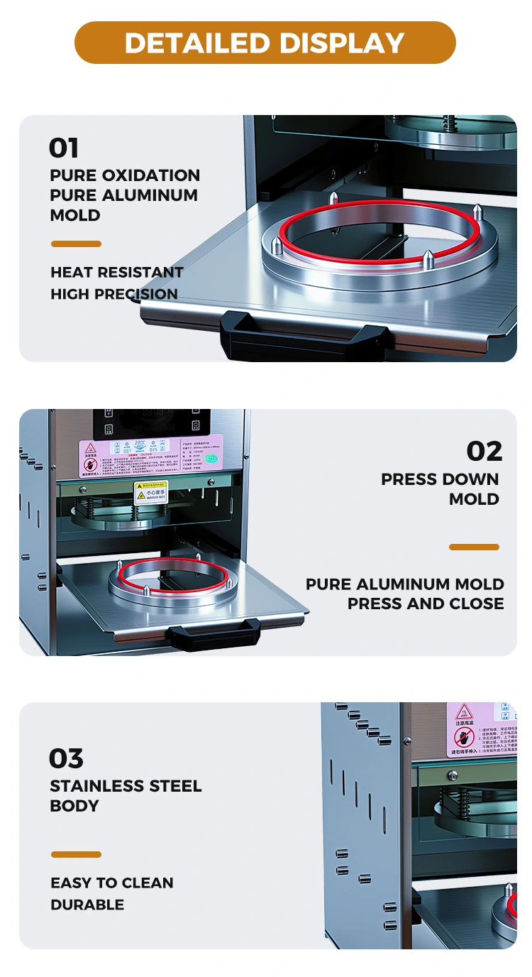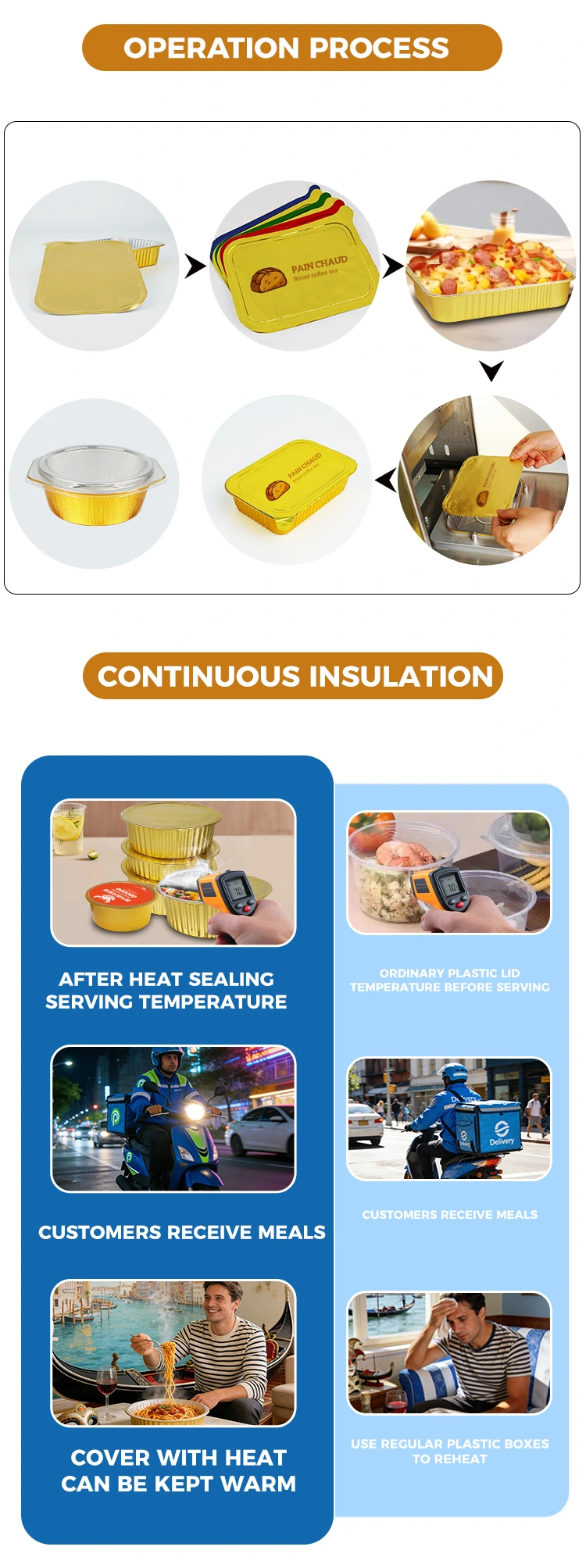 सुवर्ण ॲल्युमिनियम फॉइल कंटेनरसह युंचू पुरवठादाराचे मॅन्युअल हीट सीलिंग मशीन अचूकपणे सील करू शकते आणि शेल्फ लाइफ वाढवू शकते: हे अचूक तापमान नियंत्रण घटकाने सुसज्ज आहे. सीलबंद धार सपाट आणि टणक आहे, ज्यामुळे हवा, ओलावा आणि जीवाणू आत जाण्यापासून प्रभावीपणे रोखू शकतात, ज्यामुळे अन्नाचा ताजेपणा 3 ते 5 पटीने वाढतो. शिजवलेल्या अन्नात चव मिसळण्याची शक्यता, ताजे अन्न खराब होण्याची शक्यता असते आणि सॉस गळती होण्याची शक्यता असते, अन्नाची मूळ चव टिकवून ठेवते या मुख्य वेदनांचे निराकरण करते.