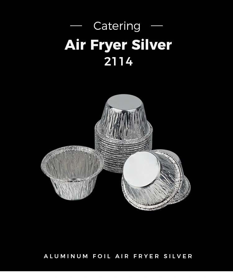 • एक वेळ लहान गोल केक एअर फ्रायर सिल्व्हर ॲल्युमिनियम फॉइल फूड कंटेनरएक वेळ लहान गोल केक एअर फ्रायर सिल्व्हर ॲल्युमिनियम फॉइल फूड कंटेनर