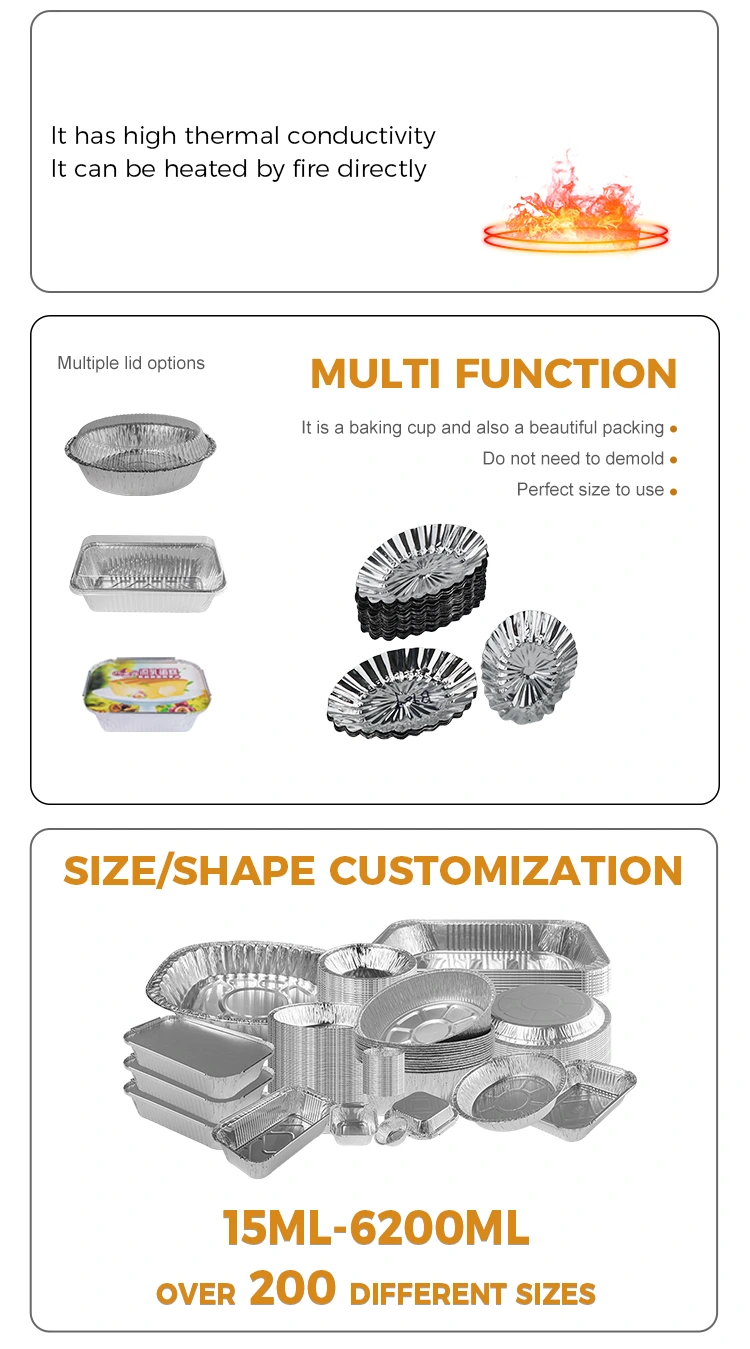 यंचू अॅल्युमिनियम फॉइल ओव्हल लेस कस्टर्ड टार्ट सिल्व्हर अ‍ॅल्युमिनियम फॉइल फूड कंटेनर बेकिंगसाठी एक चांगला भागीदार आहे, दोन्ही साचा आणि पॅकेजिंग म्हणून. हे दाट आणि कठोर सामग्रीचे बनलेले आहे, जे विकृत करणे सोपे नाही आणि तीव्र दाब प्रतिकार आहे, जेणेकरून आपण भांडे धुण्याच्या समस्येस निरोप घेऊ शकता आणि भांडे सहजपणे संरक्षित करू शकता. वंगण अलगाव, वापरानंतर धुण्याची गरज नाही, गुळगुळीत तळाशी जळजळ करणे सोपे नाही आणि तळाशी चिकटून राहणे, अन्नावर चिकटत नाही, शिजविणे सोपे आहे. तळाशी गुळगुळीत आहे, जेणेकरून आपण त्याचा अधिक शांततेसह वापरू शकता, उच्च तापमानात वापरताना मूस सोडणे सोपे आहे, तयार उत्पादन पूर्ण झाल्यानंतर साचा सोडणे सोपे आहे, तळाशी चिकटत नाही, आकाराचे नुकसान करीत नाही. जाड आणि कठोर सामग्री, जोरदार दबाव प्रतिकार, भांडी धुण्याच्या अडचणीला निरोप द्या आणि भांडे सहजपणे संरक्षित करा. वंगण अलगाव, वापरानंतर धुण्याची गरज नाही, गुळगुळीत तळाशी जळजळ करणे सोपे नाही आणि तळाशी चिकटून राहणे, अन्नावर चिकटत नाही, शिजविणे सोपे आहे. तळाशी गुळगुळीत आहे, ते -20 डिग्री सेल्सियस ते 300 डिग्री सेल्सियस पर्यंत सहन करू शकते, ते खुल्या ज्वालावर गरम केले जाऊ शकते आणि साचा समान रीतीने गरम केला जातो.