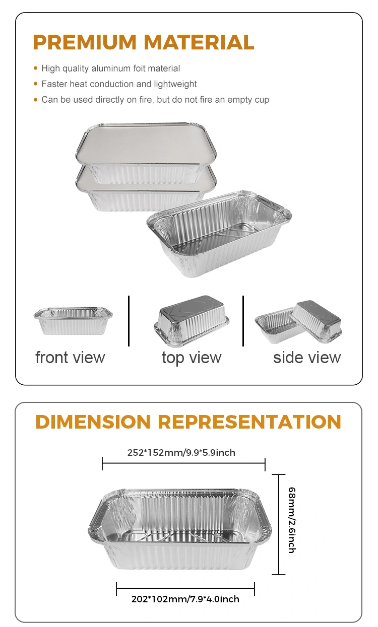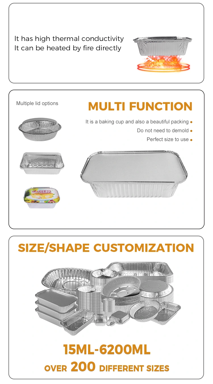 यंचू अॅल्युमिनियम फॉइल हे आयताकृती एअर फ्रायर पॅकिंग सिल्व्हर अ‍ॅल्युमिनियम फॉइल कंटेनर उच्च-गुणवत्तेच्या 8011 अॅल्युमिनियम फॉइल मटेरियलपासून बनलेले आहे, ज्यामध्ये उष्णता इन्सुलेशनची उत्कृष्ट कार्यक्षमता आहे आणि अन्नाचे तापमान प्रभावीपणे राखू शकते, ज्यामुळे अन्न अधिक स्वादिष्ट आणि मधुर बनते. त्याच वेळी, आमचे आयताकृती बीबीक्यू सिल्व्हर अ‍ॅल्युमिनियम फॉइल कंटेनर देखील उष्णता संरक्षणाच्या कार्यासह सुसज्ज आहे, जे त्यास अ‍ॅल्युमिनियम फॉइल झाकण किंवा पाळीव प्राण्यांच्या प्लास्टिकच्या झाकणासह जुळवून साध्य केले जाऊ शकते, जे सानुकूलित लोगोसाठी सोयीस्कर आहे आणि अशा प्रकारे ब्रँड प्रतिमा वाढवते.