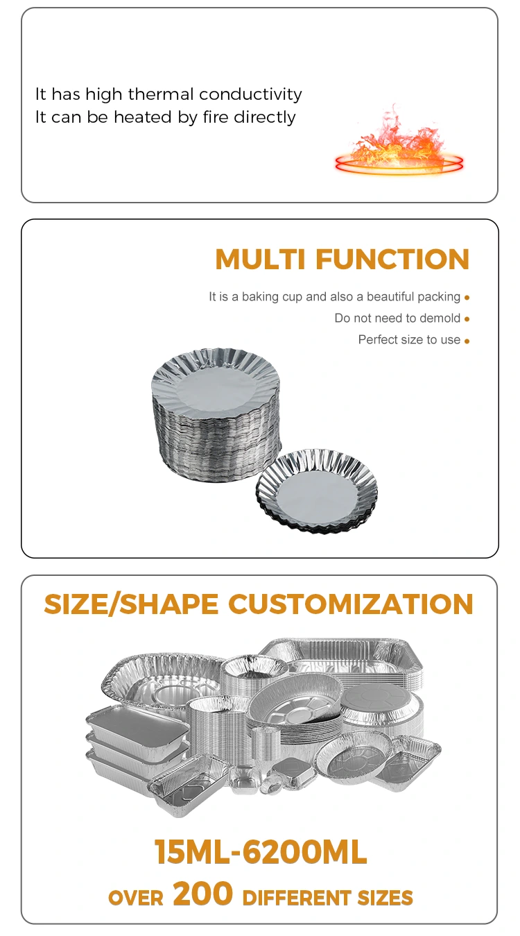 यंचू कंपनी निर्मित, चांदीच्या अ‍ॅल्युमिनियम फॉइल फूड कंटेनरसह राउंड बेकिंग केक टिन डुकराचे मांस चॉप बन, हॉट डॉग्स आणि पेस्ट्री सारख्या विविध पदार्थांसाठी योग्य आहे. हे केवळ आपल्या अन्नास दूषित होण्यापासून वाचवते असे नाही तर ते अधिक उत्कृष्ट आणि सौंदर्याने आनंददायक देखील बनवते.