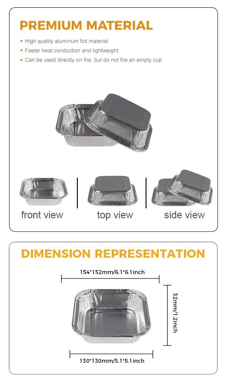 हॉट टॅग्ज: स्क्वेअर केक एअर फ्रायर सिल्व्हर अ‍ॅल्युमिनियम फॉइल कंटेनर